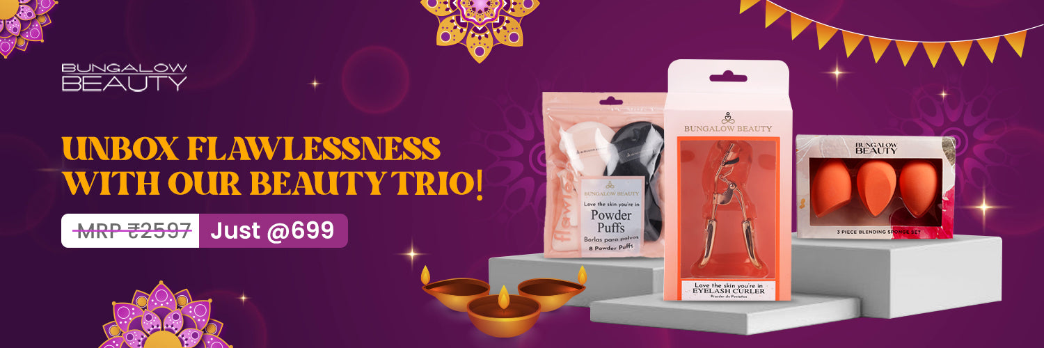 Makeup Essentials Set – Blender Pack of 3, Powder Puff 8 Pack & Gold Eyelash Curler
