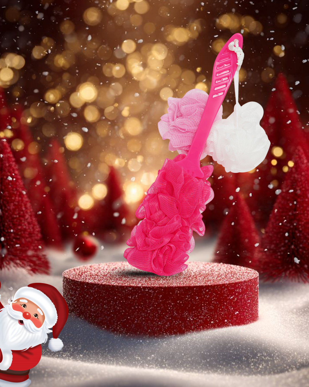 Elevate your bathing routine with this practical 3-piece loofah handle brush and 2 loofah balls set. The vibrant pink handle brush features an ergonomic design with ridges for improved grip, while the soft mesh loofah material in pink and white shades provides gentle exfoliation.